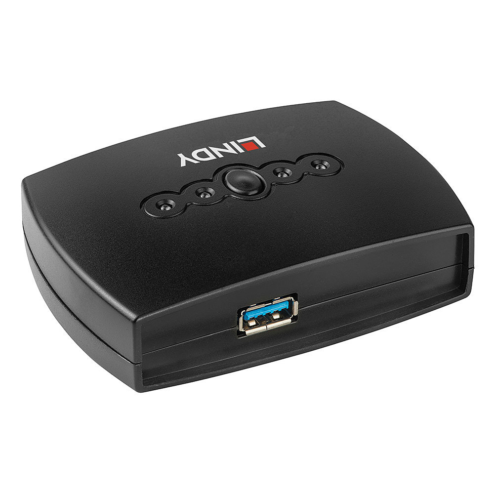 Lindy 4 端口 USB 3.0 切换器最多可让 4 位用户共享 USB 3.0 外围设备,而无需反复交换电缆或设置复杂的网络共享软件。使用中的计算机端口可通过按钮选择。该切换器非常适合在小型办公环境中共享打印机或扫描仪。