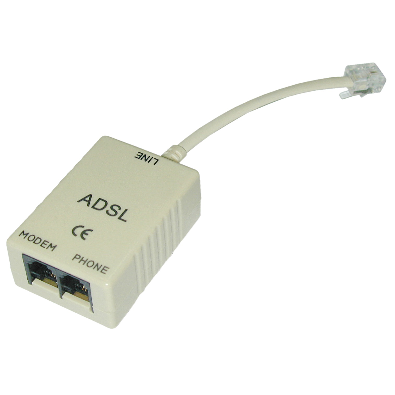 ADSL分离器,用于分离DSL线路上的数据和语音信号 适用于可以通过RJ11连接器将设备连接到的所有电话网络。